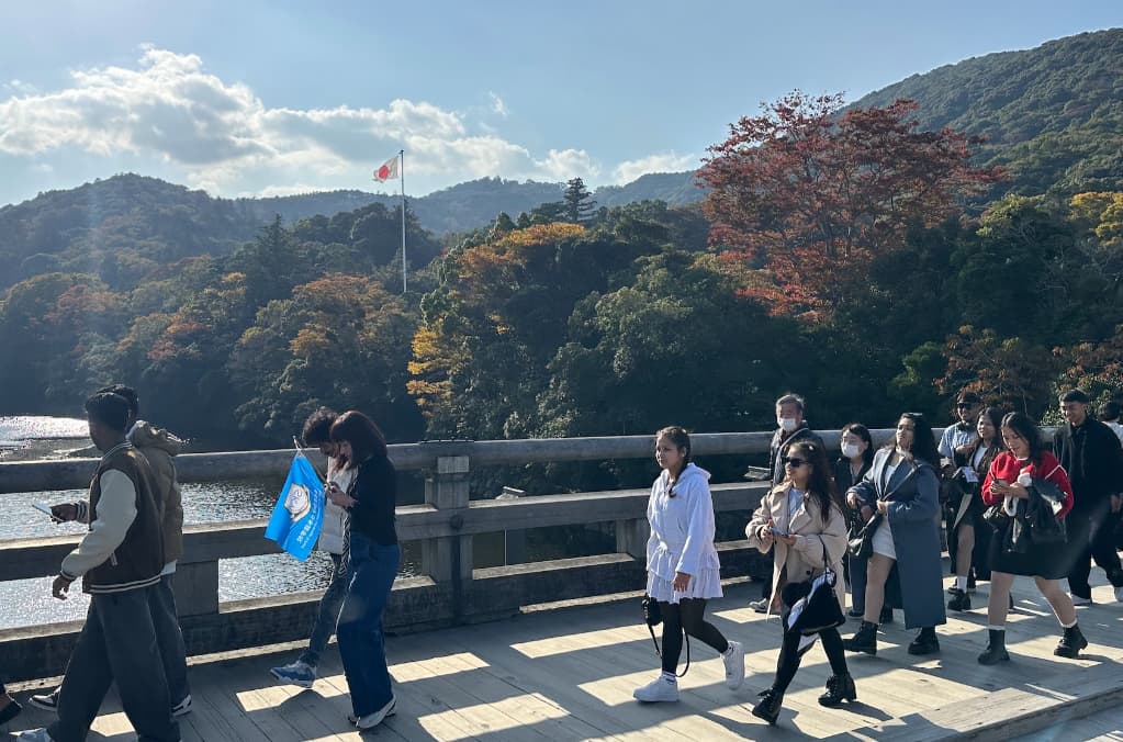 帰り際に日本語学校の生徒たちが大挙して宇治橋を渡ってきた。日本の心に触れるには神社の世界に浸るのが一番だからだろう。日本にいる以上、日本を好きになってから帰国してほしいなと思った。