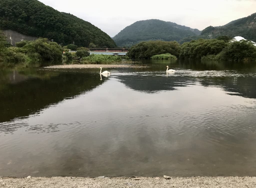 インディアン水車に向かって川沿いの道を上流に向かって車を走らせると、いたいた!