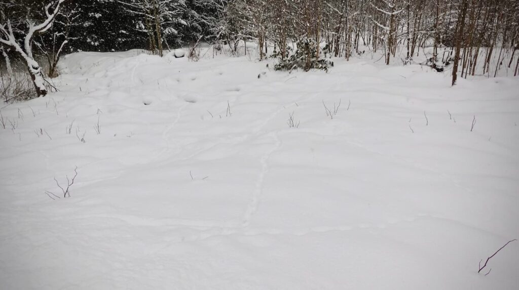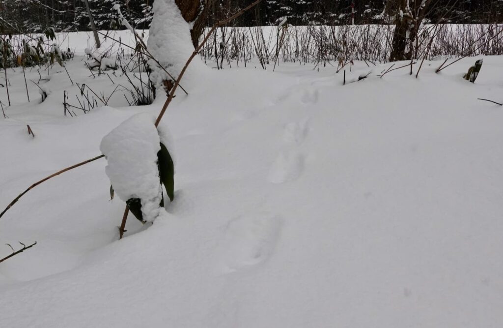 とは言っても日中は足跡しかなくて、ウサギが雪の上をすっ飛んでいく様子を見るなどというのは稀だ。だからそれを面白くするにはある程度の知識と想像力が必要とされる。