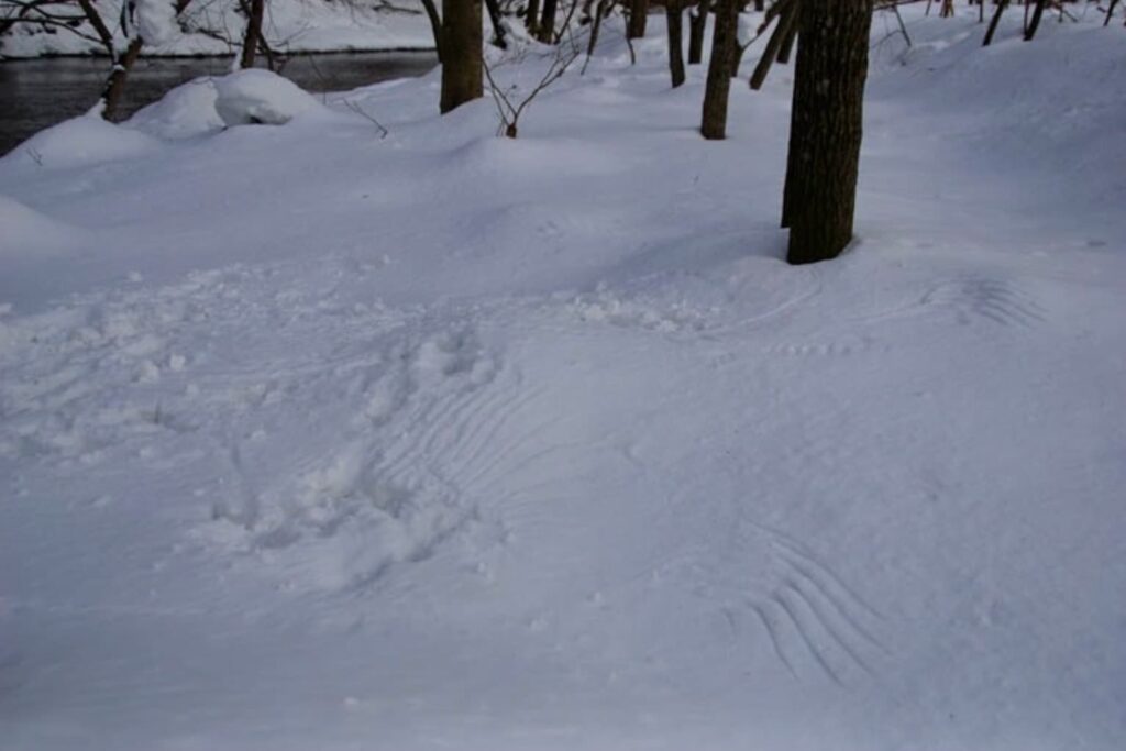 普段入れないところに行けるのは冒険心をそそる。そして雪上には動物の痕跡がある。
