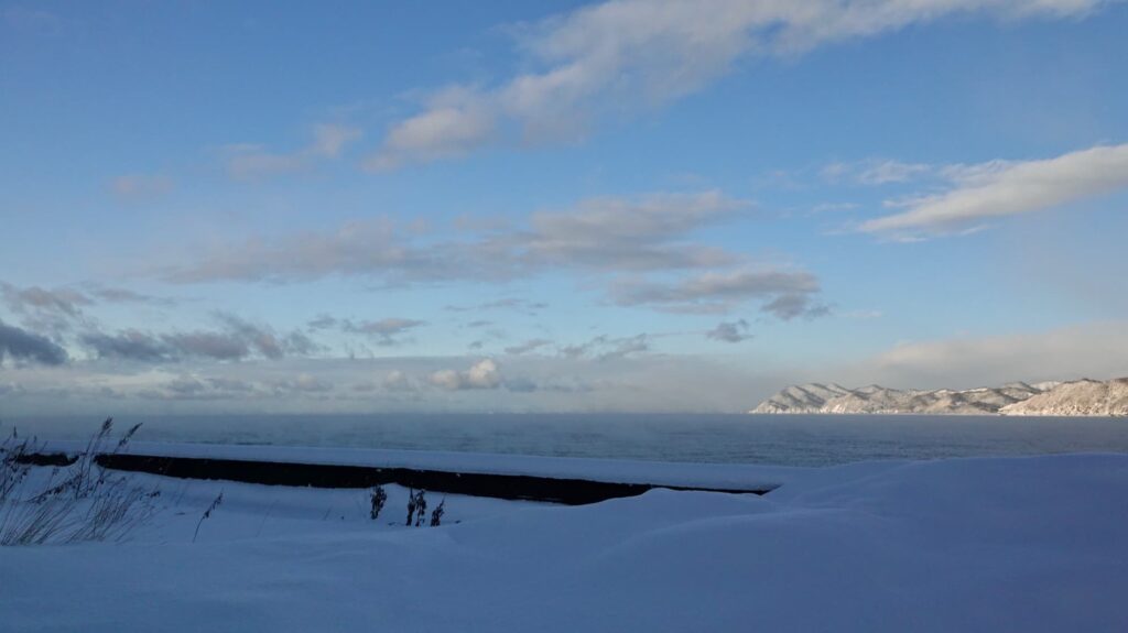 面倒くさいと思いつくその前に行動を起こし、埋もれていた車を必死にかき出し、海の方に行ってみた。そこから撮った写真。そこで家の前を雪かきしていた知り合いが「今日は大したことないな。おとといはすごかったぞ。」と教えてくれた。