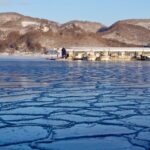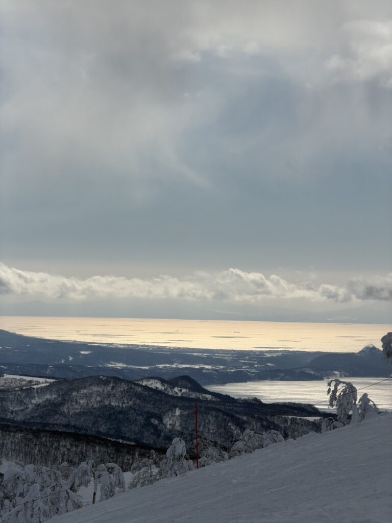 樹氷と洞爺湖、そして羊蹄山がうっすらと見える。