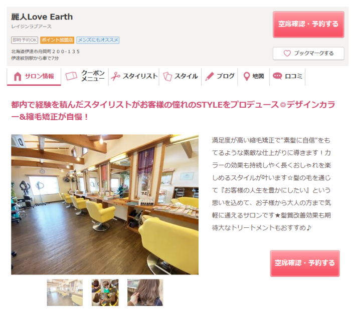 ②麗人公式ホームページからのご予約