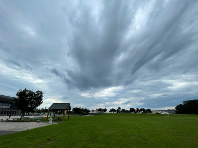 露天風呂から中島を眺めていたら雲行きが怪しくなり