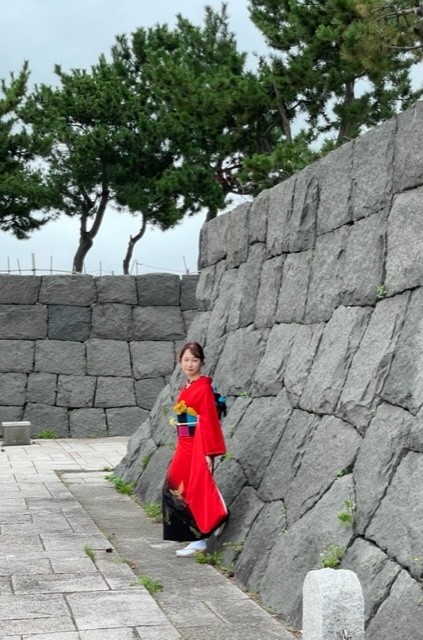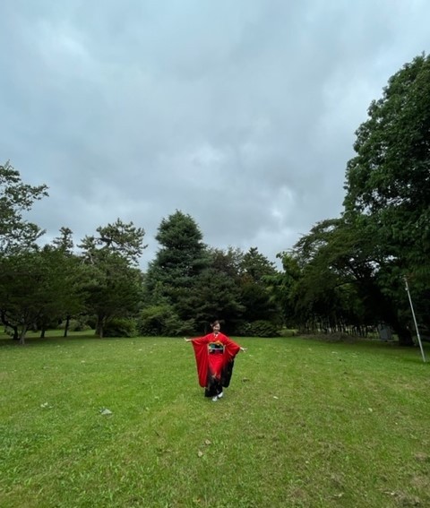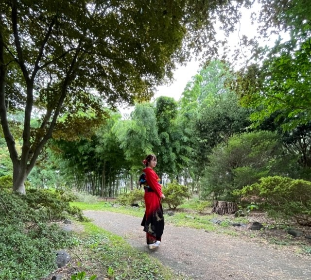 緑に映える真っ赤なお着物と〇〇ちゃんの笑顔のビジョンは