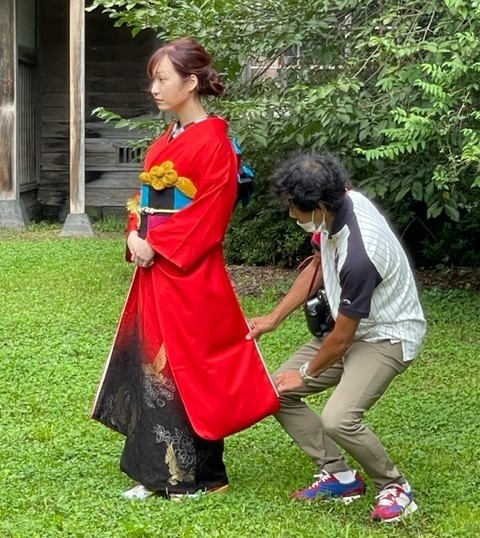 着付けのほうも撮影場所まで歩いたことで帯も落ち始めていた最悪の状態・・。