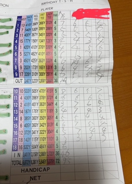 95なんて自慢できるスコアではありませんが・・。いい感じで終われた感が満載な