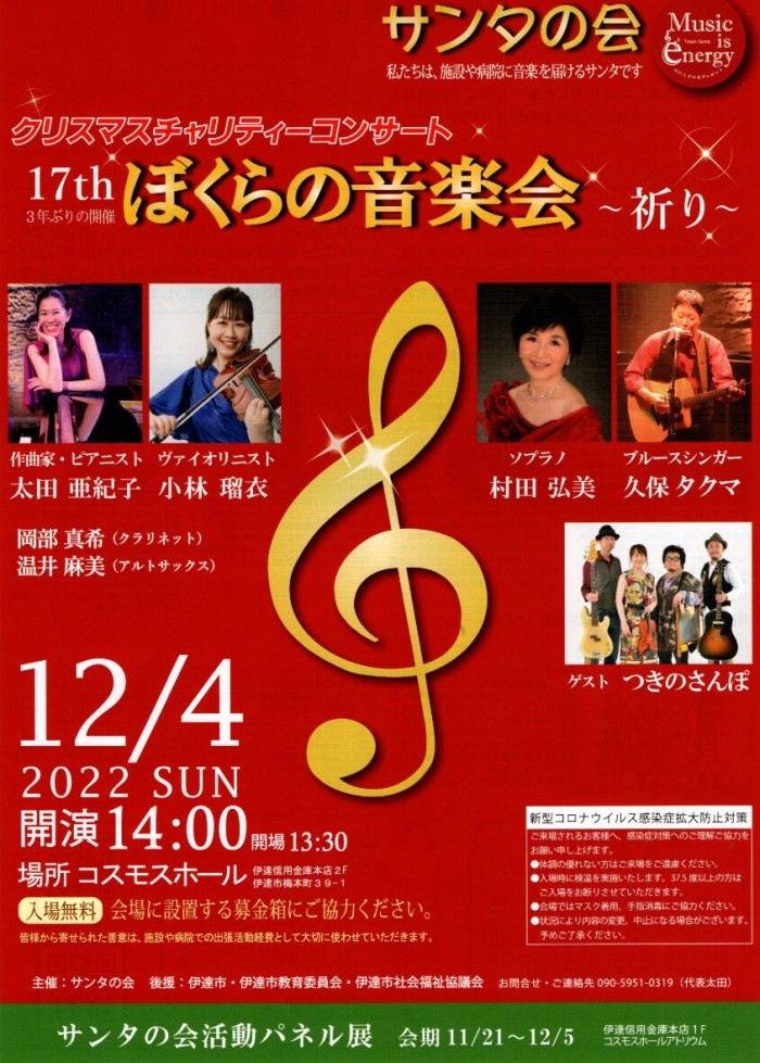 本日はサンタの会の『ぼくらいの音楽会』です