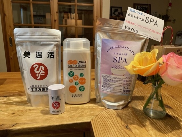 写真は銀座まるかんで推奨する<美温活・美龍・温浴剤>のほかに