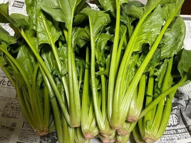 もぎたてと冬の寒さによって甘みをましたほうれん草を