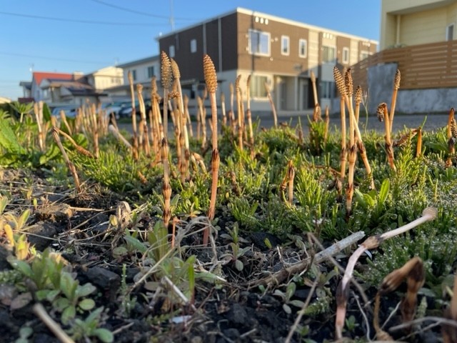 駐車場の横にある花壇らしきものには、つくしが主張をしております。