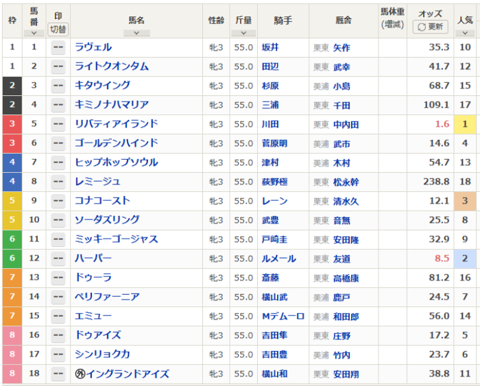 今日のオークスは17番・シンリョクカを狙ってみよう?