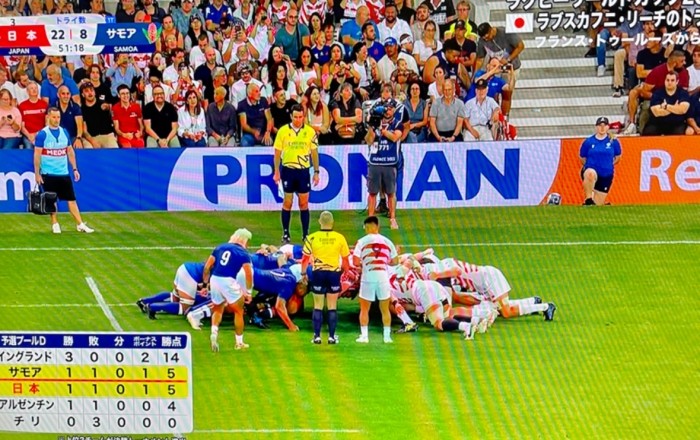 ただいま、ワールドカップラグビーを見ながらブログを投稿。
