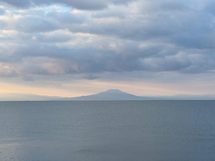 車を降りると、塩の香りと駒ヶ岳が見えます。