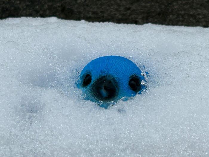 雪で作ったシマエナガちゃんを手直しする