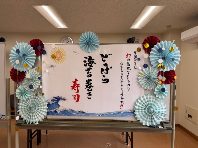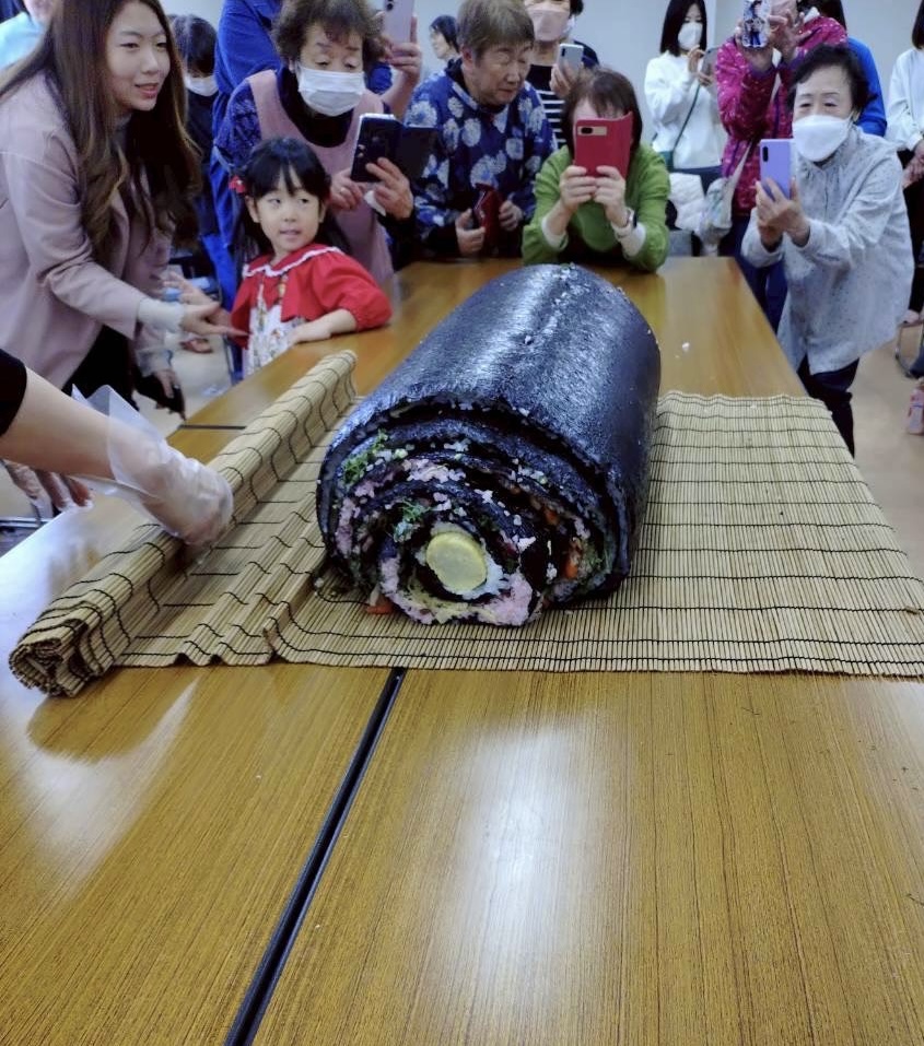当初の予定は2メートルの海苔巻きの予定でしたが