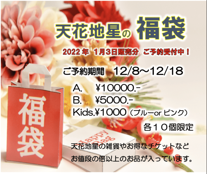 10000円・5000円・1000円(ブルー&ピンク)の福袋を各10個限定で販売いたします。