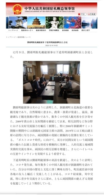 劉亜明駐札幌総領事が洞爺湖町を表敬訪問されました。