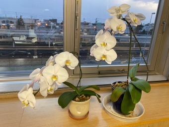 町長室の胡蝶蘭が二度咲き満開です。